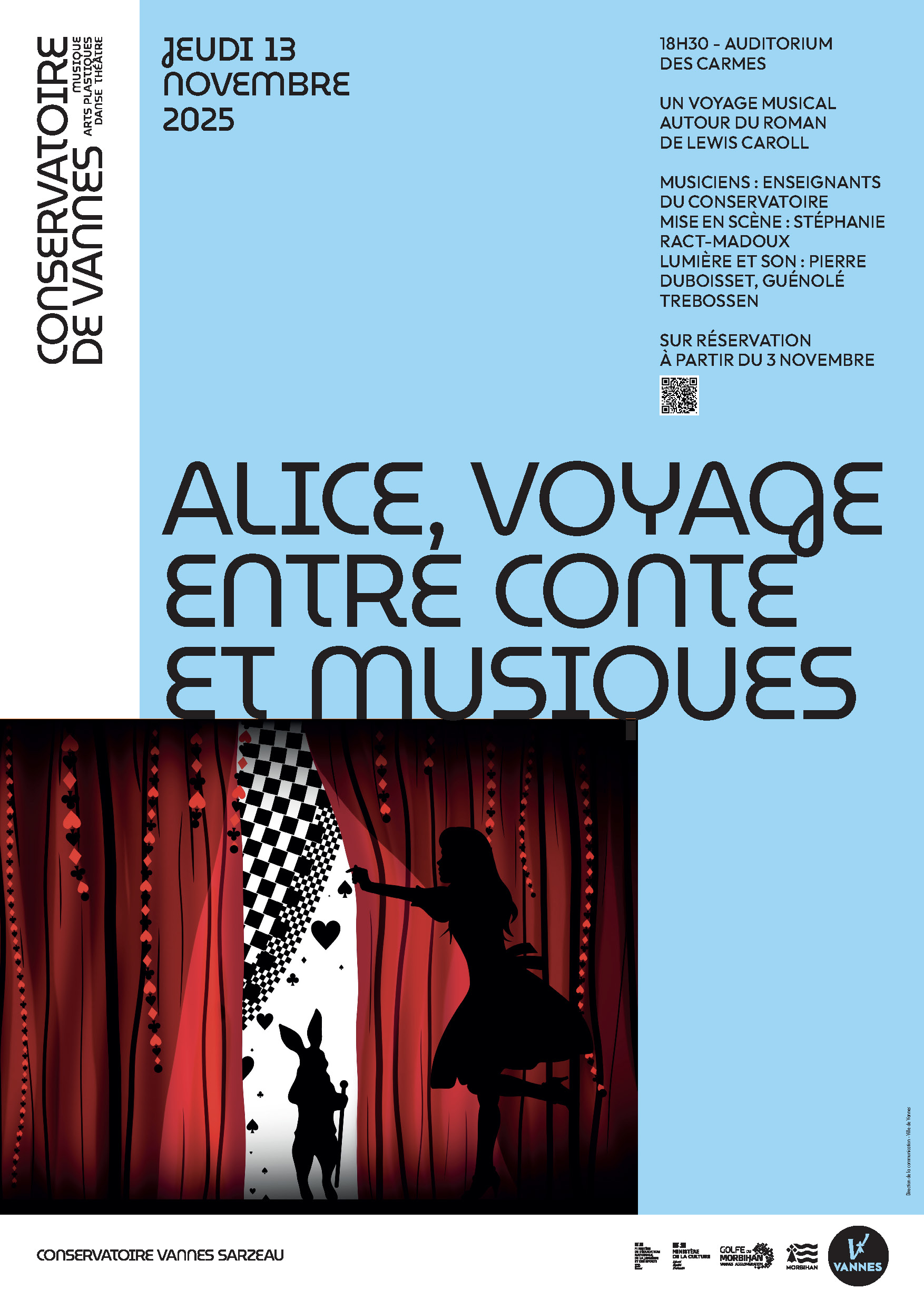 Découvrez un spectacle original tout public autour d'Alice au pays des merveilles de Lewis Caroll, proposé par les enseignants du conservatoire. L'histoire contée est accompagnée de musiques de compositeurs du 20ème siècle (Messiaen, Ravel...) Venez vivre ce conte enchanté où chaque mélodie raconte une histoire.