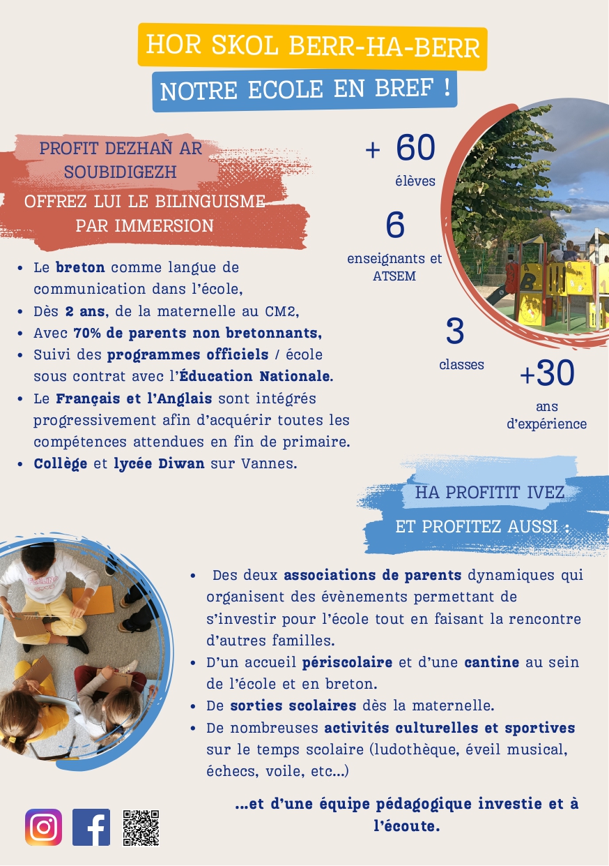 Éducation Portes ouvertes de l'école Diwan Accueil Agenda Portes ouvertes de l'école Diwan L'école Diwan, vous ouvre ses portes le samedi 7 février de 9h à 12h. 07 févr. Ecole Diwan, 3 impasse de Bohalgo Pour aller plus loin Éducation 16 janv. 17 janv. Salon Info’sup Bretagne Sud Le salon de l’Enseignement supérieur du Morbihan Éducation 24 janv. Portes ouvertes du collège Notre Dame le Ménimur Portes ouvertes du collège Notre Dame le Ménimur le samedi 24 janvier de 9 h 30 à 12 h. Infos pratiques Ecole Diwan Voir sur la carte Événement gratuit 02 97 47 85 92 skol.gwened@diwan.bzh Ecole Diwan De 9h à 12h