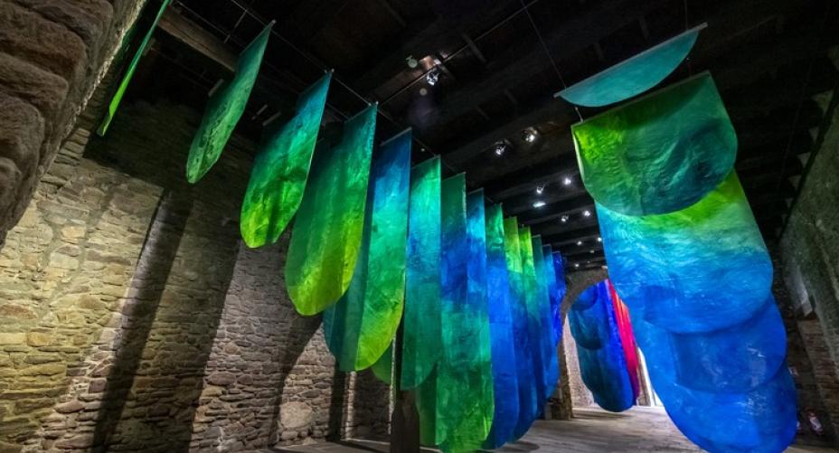 À découvrir, l'exposition UNDA / Traversée spectrale d'Elsa Tomkowiak au cœur du passage central du musée des beaux-arts La Cohue.