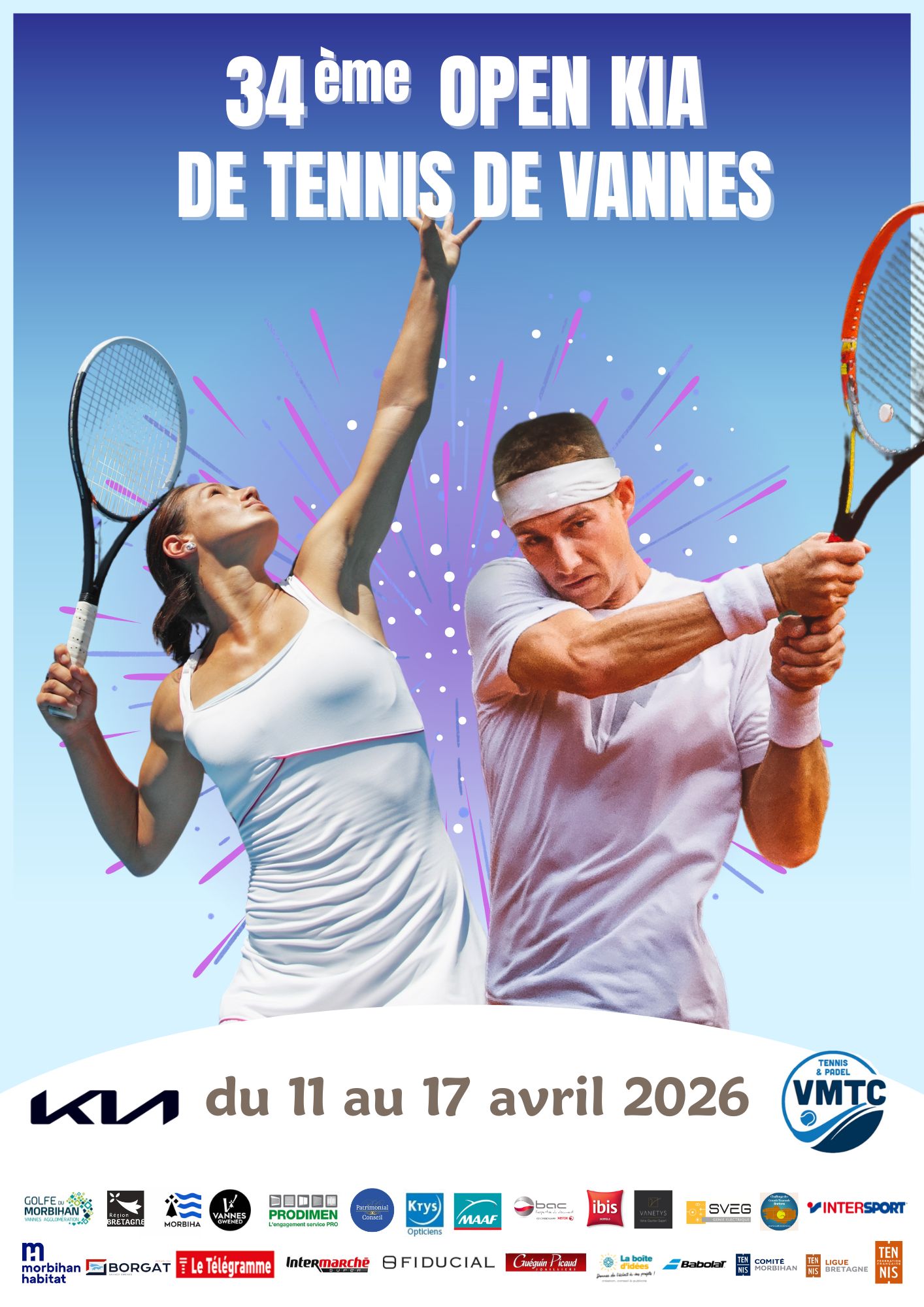 Le 34ème OPEN KIA de Tennis de Vannes se déroulera du 11 au 17 avril 2026. Un tournoi de tennis de niveau national hommes et femmes ouvert aux meilleurs joueuses et joueurs français et étrangers.