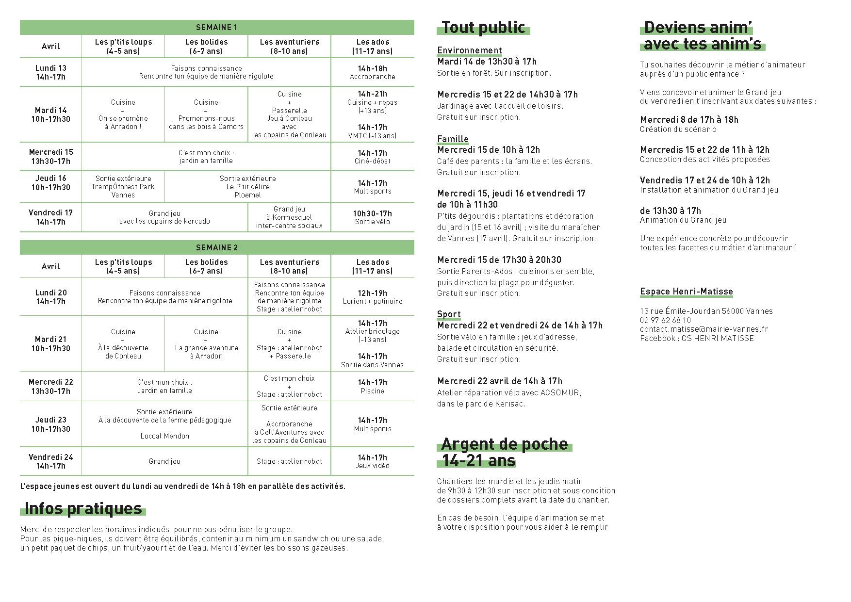 Programme vacances de printemps - Du 13 au 24 avril 2026