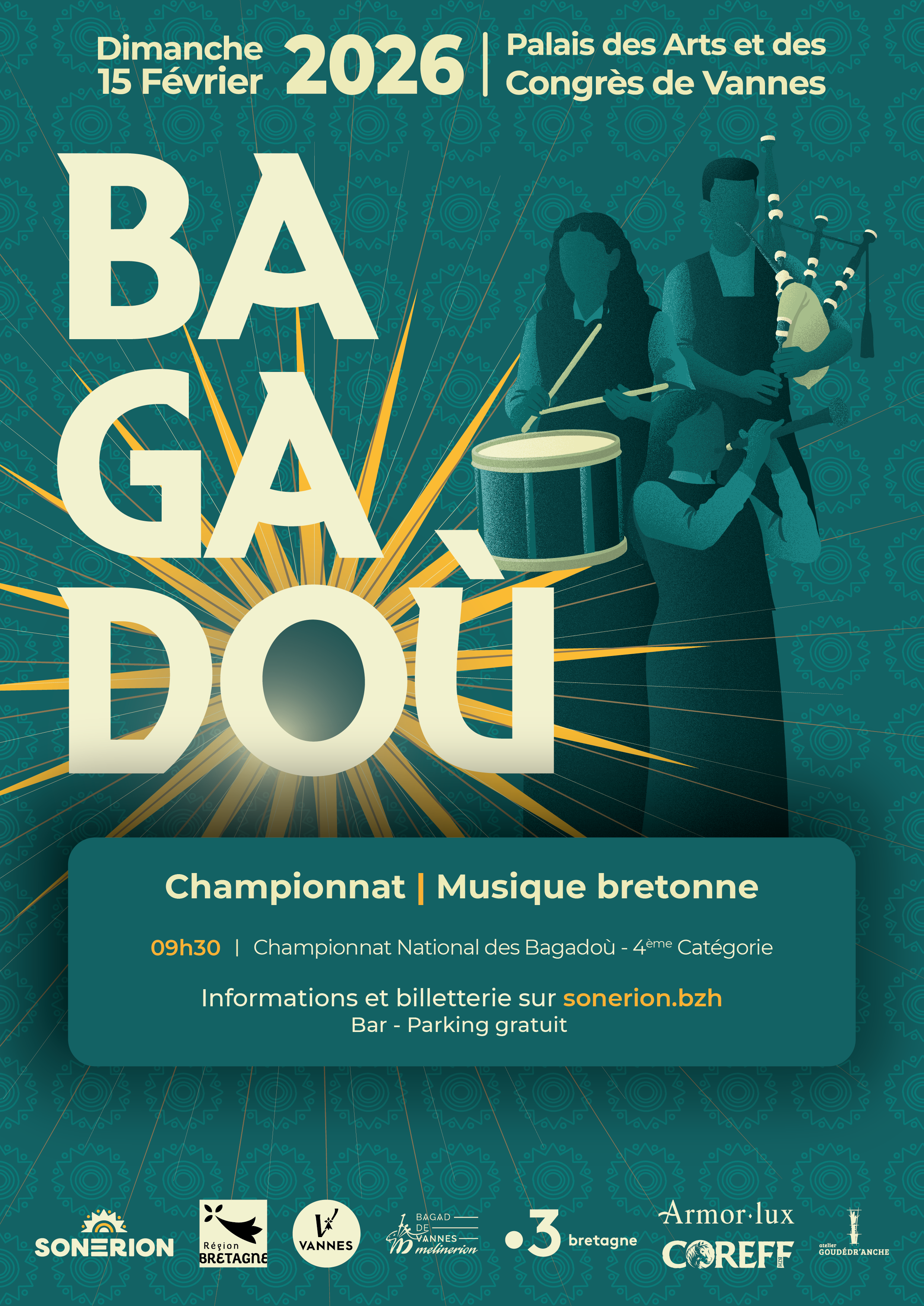 Découvrez les 25 groupes concurrents au championnat national des bagadoù de 4ème catégorie le 15 février au Palais des arts.