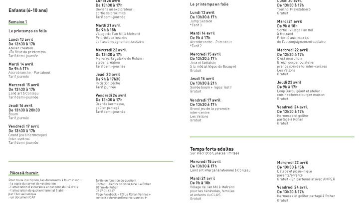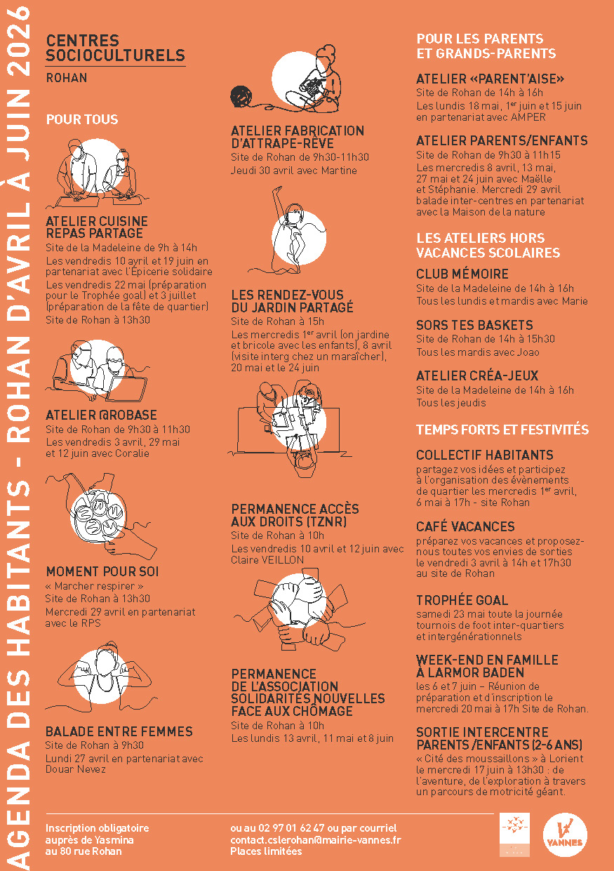 > Le Centre socioculturel Le Rohan (loisirs 6-17 ans - 80 rue de Rohan). Programme et inscription à l'accueil du centre uniquement.
