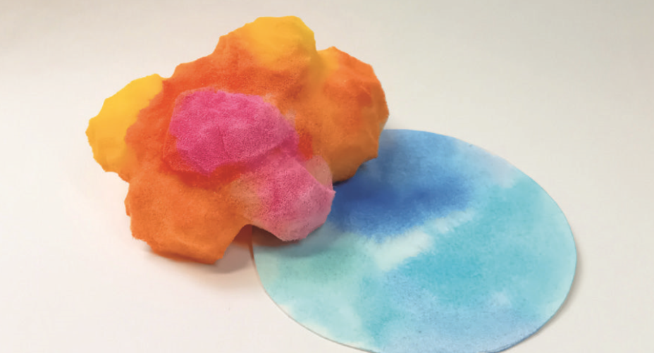 Les couleurs de l’installation d’Elsa Tomkowiak se diffusent et créent des dégradés surprenants. Expérimentez la magie des mélanges de couleurs et créez une sculpture en mousse originale.