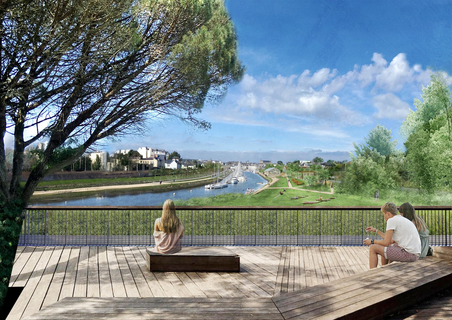 L'agence TER retenue en avril 2024 pour la réalisation des études de conception accompagne la ville de Vannes dans une nouvelle approche résiliente du parc de la Rive gauche. Agence de paysage et d'urbanisme, Grand prix d'urbanisme en 2018, l'Agence TER est largement engagée dans une approche climatique des projets prônant la constitution de sols vivants. Elle a notamment réalisé la place de la Petite Hollande à Nantes par la transformation d'un espace de stationnement en un parc de 4 hectares d'espace de pleine terre, vecteur de biodiversité. Sélectionnée parmi plusieurs groupements, l'agence TER a séduit la Ville de Vannes par son approche des enjeux climatiques.