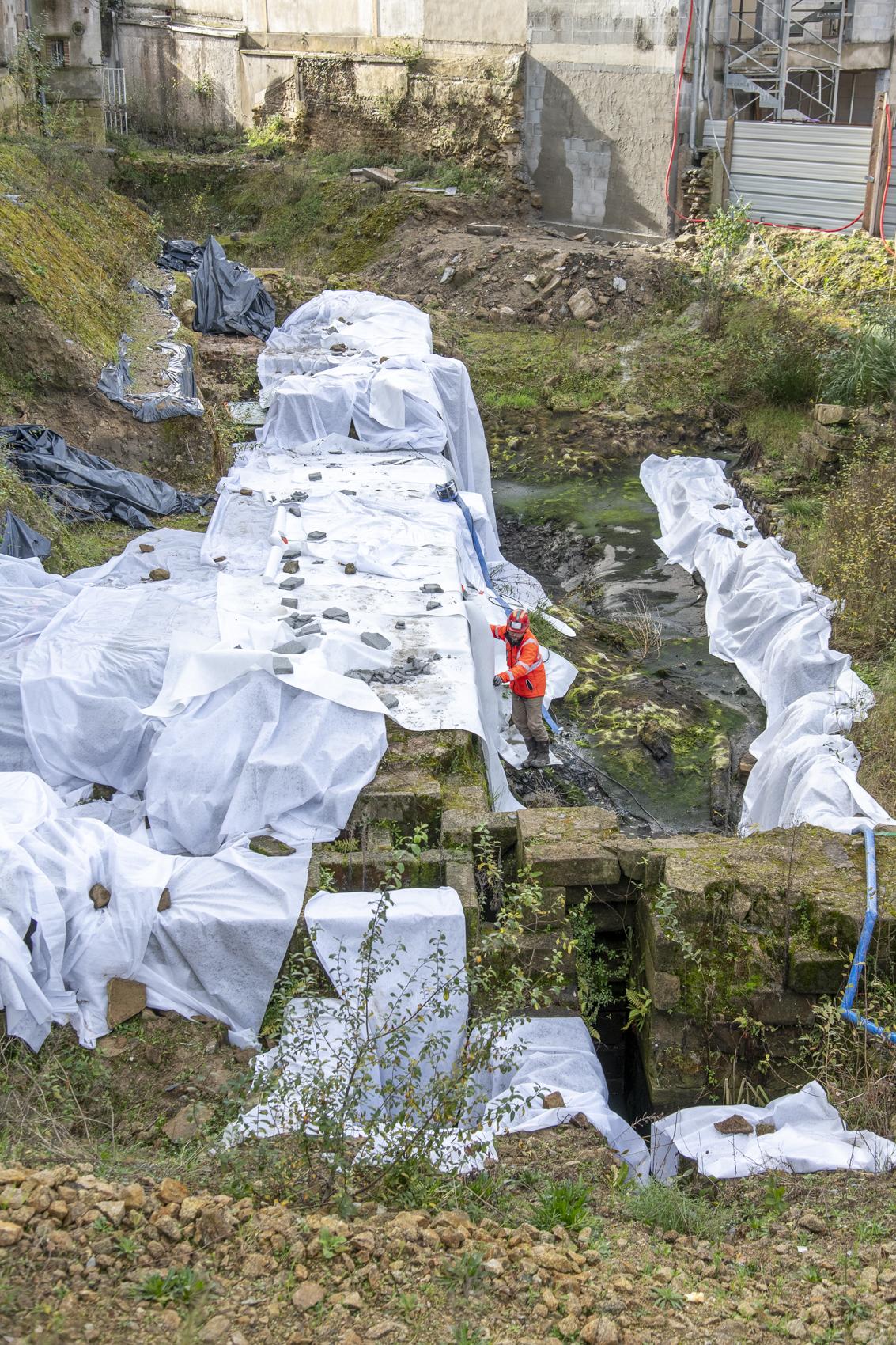 Une opération de protection des fouilles s'est déroulée le 27 novembre avec la mise en œuvre de géotextile.