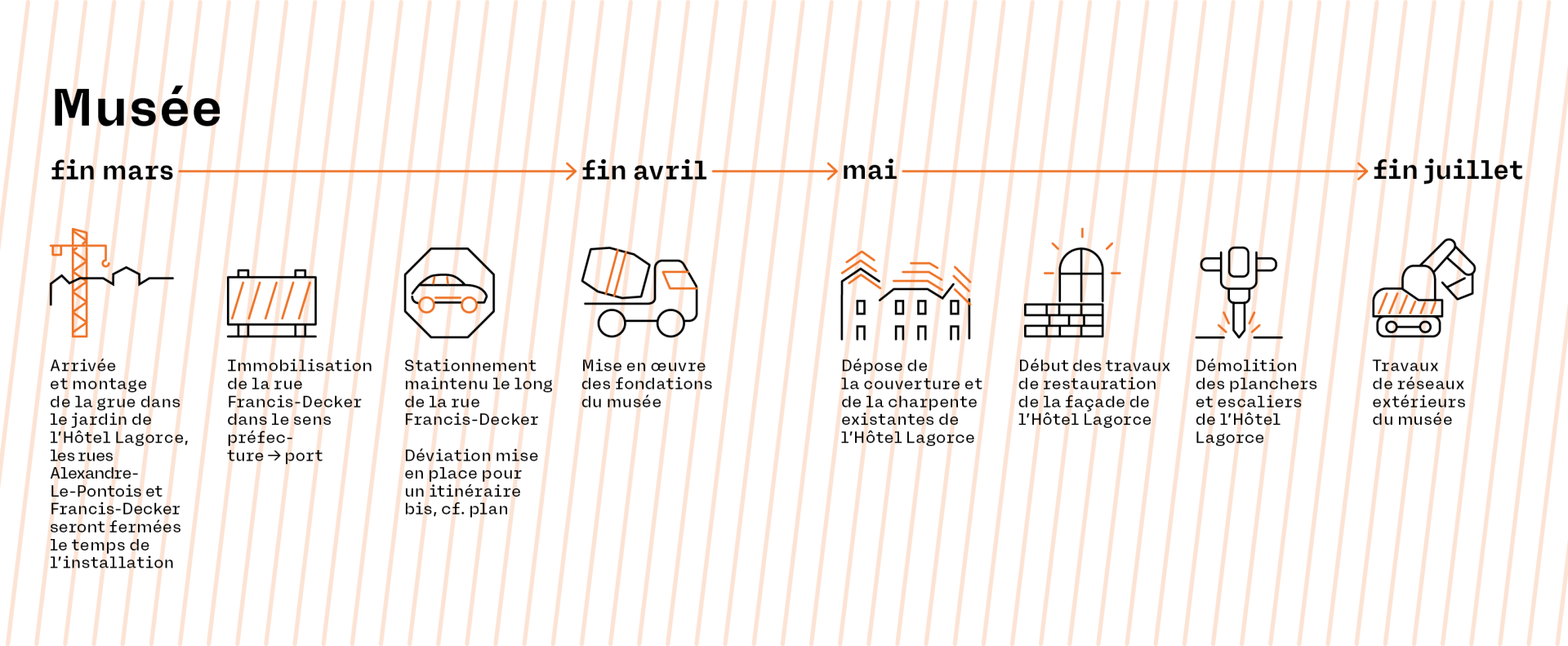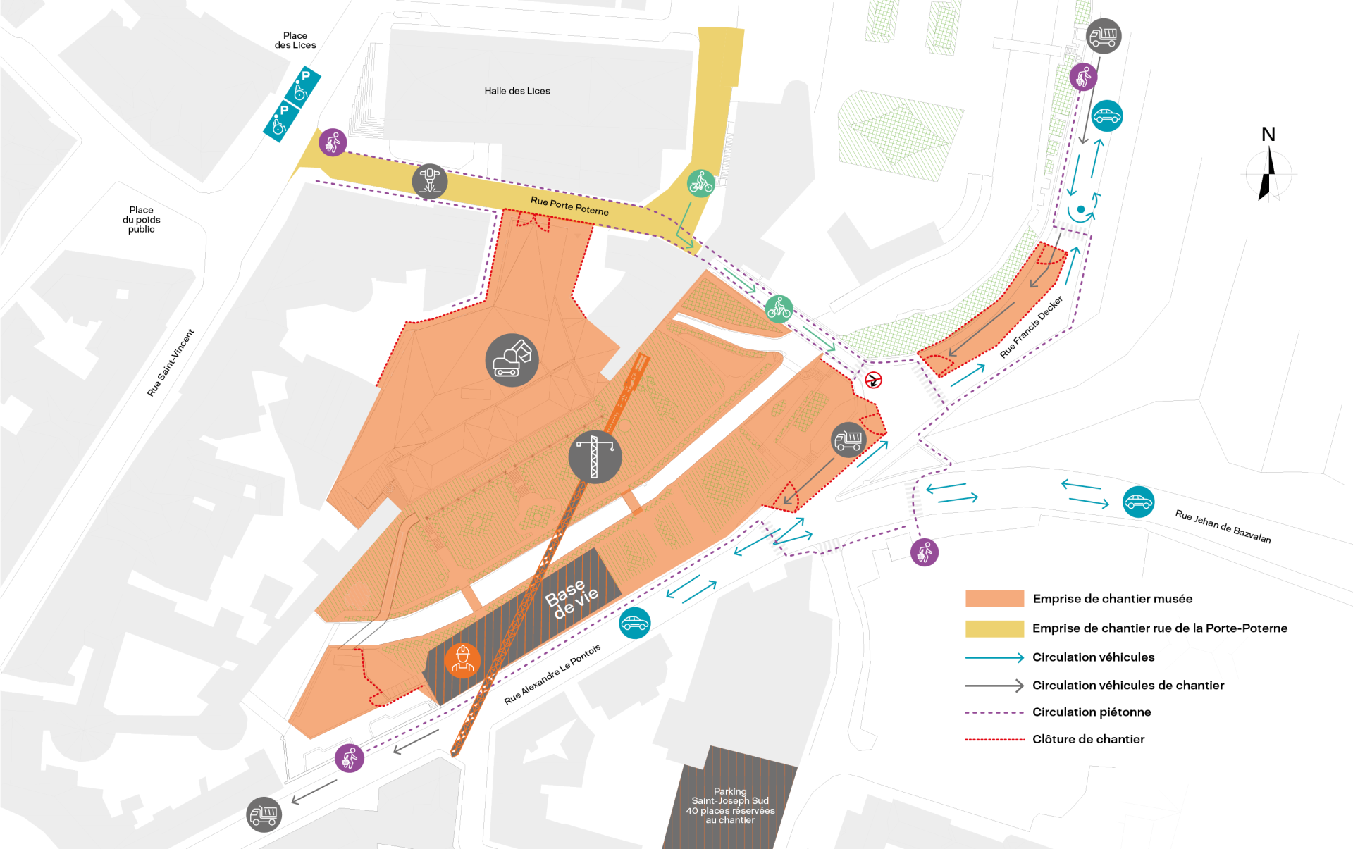 Dans le cadre de la continuité des travaux préparatoires du futur musée des beaux-arts, deux rues seront temporairement inaccessibles afin de sécuriser le chantier et faciliter les interventions des entreprises, soit les rues Alexandre-Le-Pontois et Francis-Decker.