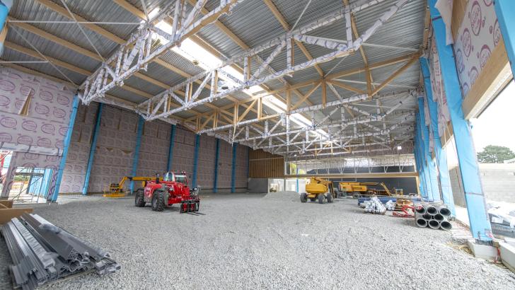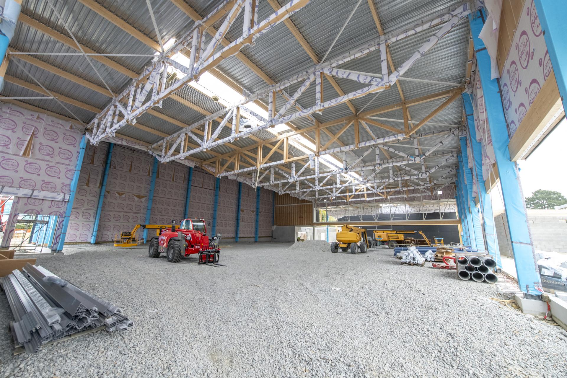 Les travaux du complexe sportif ont débuté en juin 2025. Le chantier a atteint une étape clé avec la finalisation de la charpente, permettant désormais de percevoir les volumes intérieurs du bâtiment.