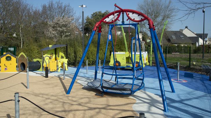 Trois espaces distincts, repérables aux couleurs des sols souples, composent l’aire de jeux destinée aux enfants de 1 à 14 ans :
