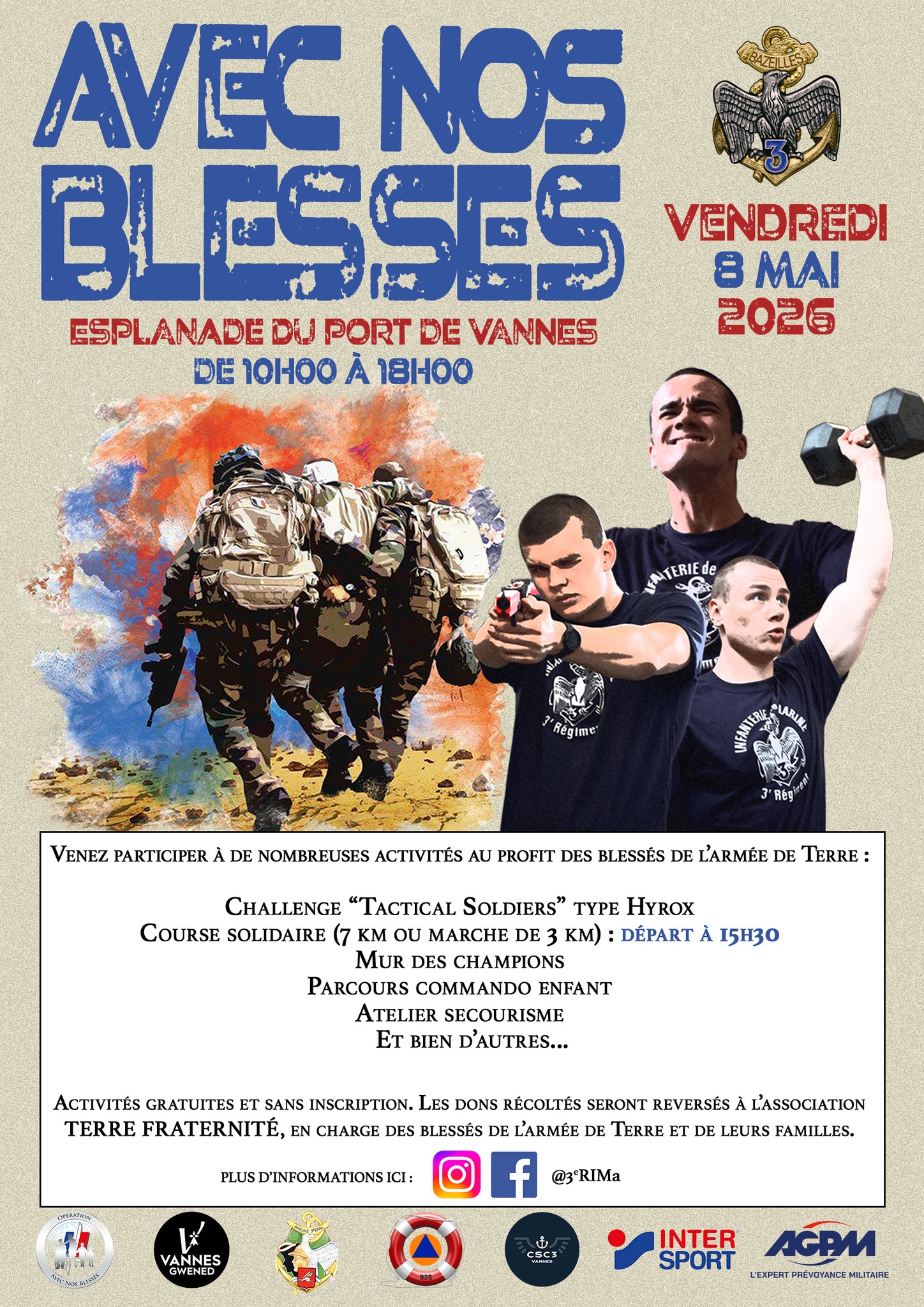 Les marsouins du 3e régiment d’infanterie de marine vous donnent rendez-vous le vendredi 8 mai de 10h à 18h sur la rive gauche du port pour une journée en faveur des blessés de l’armée de Terre et de leurs familles.