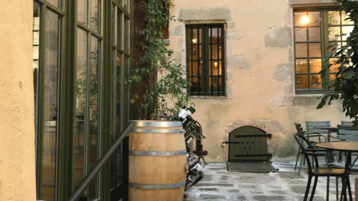 Les travaux de restauration et d’aménagement de ce nouveau restaurant ont mis en valeur les caractéristiques patrimoniales de cette construction dont la cour aménagée en terrasse pour
