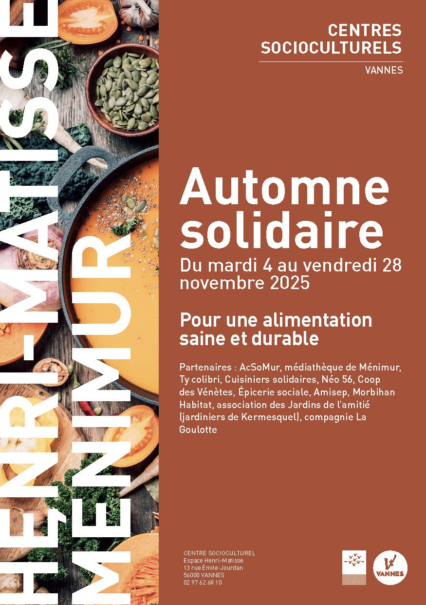 L'actualité du centre Programmes des activités Au cœur du quartier Un accompagnement sur mesure Permanences du CCASPour être au plus près des vannetais et contribuer « au mieux vivre ensemble » le centre socioculturel Henri-Matisse situé au coeur du quatier de Ménimur vous propose un lieu de vie convivial, où se mêlent des activités de loisirs, éducatives, culturelles et artistiques. C’est aussi, un lieu d’écoutes, de partages ouvert à tous.