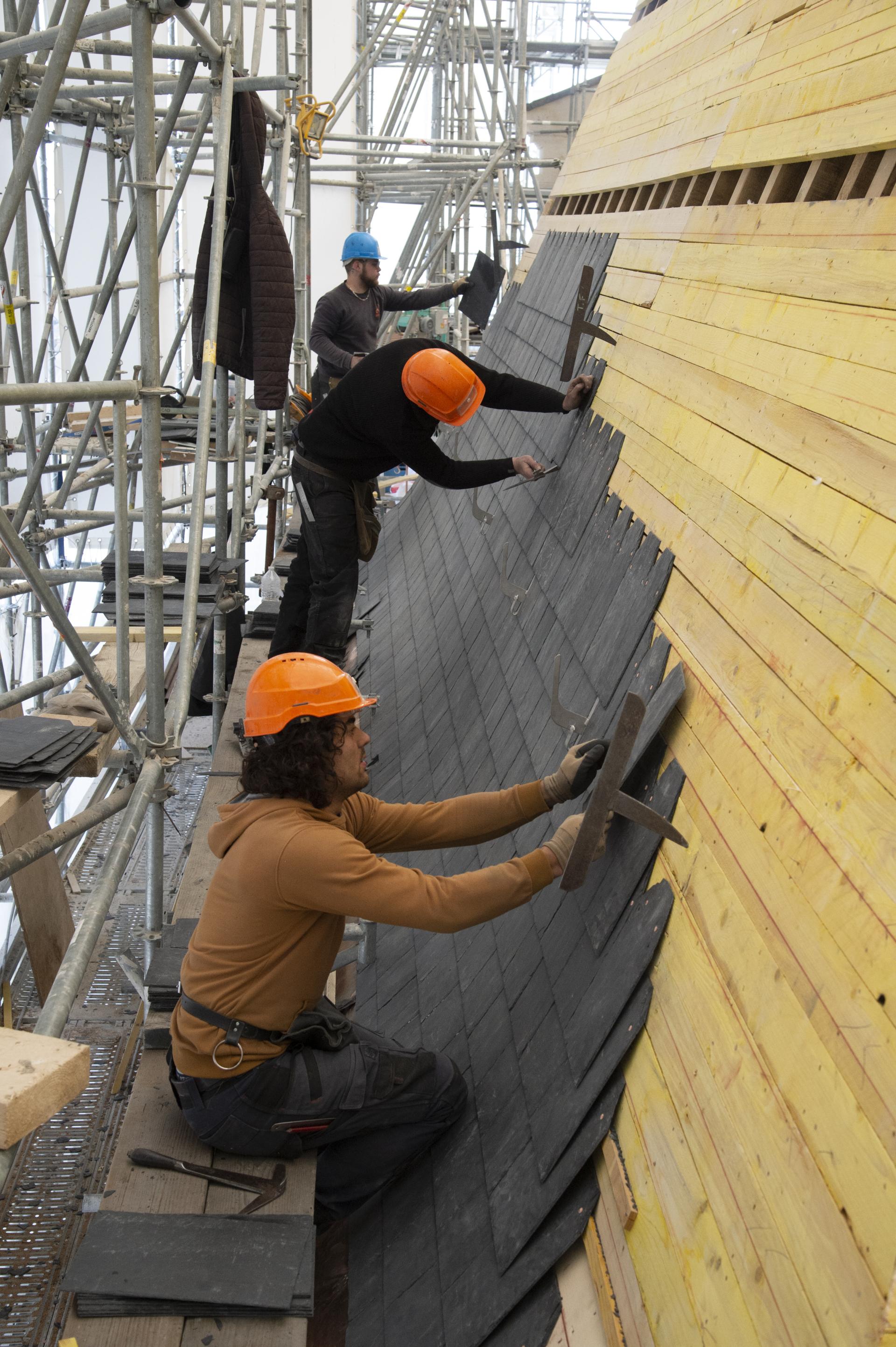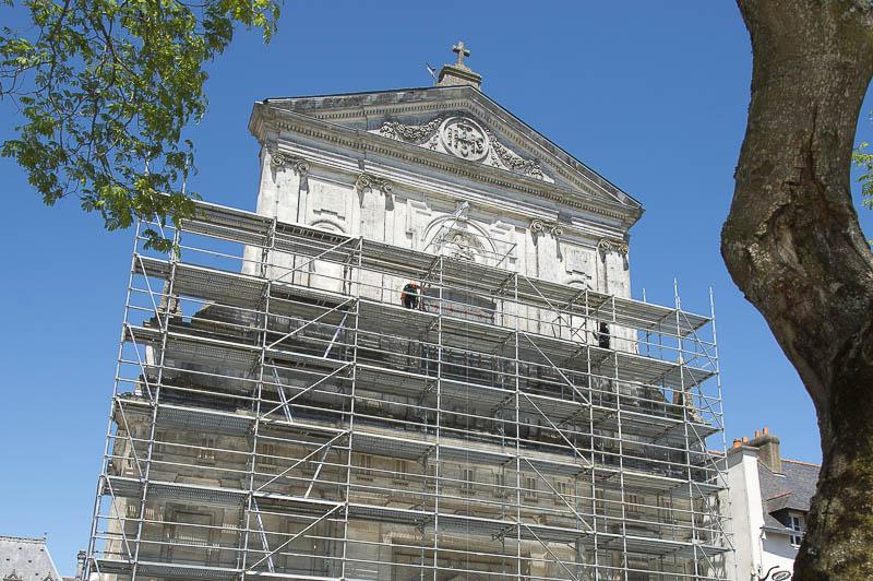 La charpente mise à nu pour une complète réfection, les vitraux démontés un par un pour être restaurés ou remplacés… Sous la bâche qui couvre entièrement la chapelle Saint-Yves et qui a été mise à rude épreuve par les violentes rafales de vent de la tempête Alex, dans la nuit du 1er au 2 octobre 2020, les entreprises sont à pied d'œuvre pour assurer l'ensemble des travaux de consolidation et de rénovation de l'édifice.