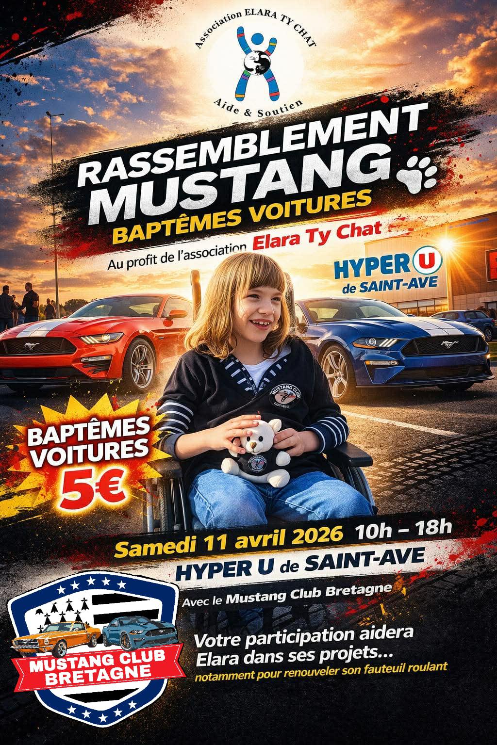 Associations Rassemblement Mustang | baptême voitures Accueil Agenda Rassemblement Mustang | baptême voitures Le Mustang Club Bretagne en collaboration avec l'Hyper U de Saint-Avé et l'association Elara Ty Chat, des baptêmes en voiture américaine et autres voitures de prestige afin de récolter de l'argent au profit de cette association. 11 avr Baptêmes voitures de 10h à 18h le samedi 11 avril Hyper U de Saint-Avé Pour aller plus loin Associations 17 oct. Journée mondiale de refus de la misère http://refuserlamisere.org/ Associations 14 janv. Temps d'échanges Temps d'échange sur la création d'une association de parents/grands-parents au centre socioculturel Le Rohan Infos pratiques Hyper U de Saint-Avé Voir sur la carte