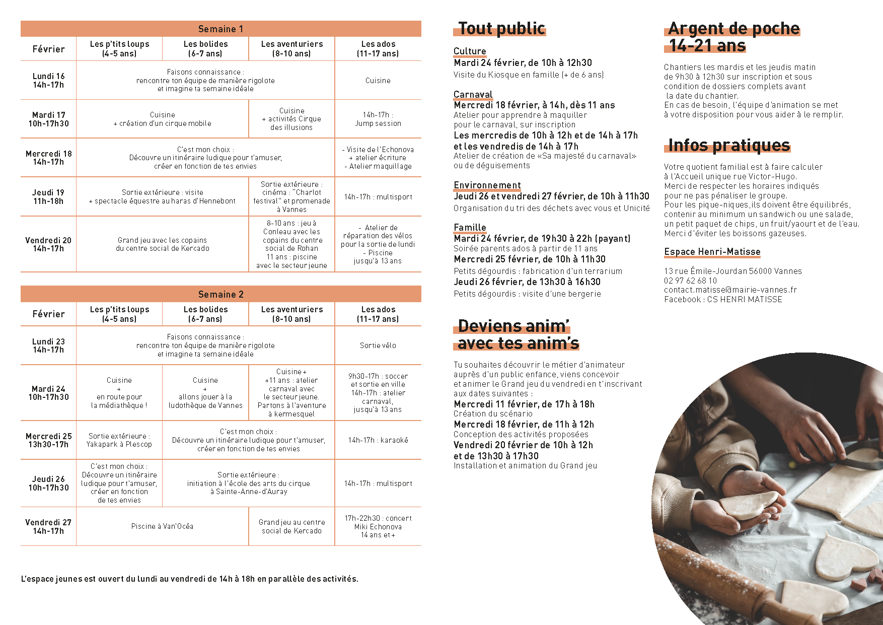 Er lec'h-mañ e c'hell ar re yaouank bout lod en o deverrañsoù, dre ur bochad abadennoù (beajoù, atalieroù harikotal, deskiñ un tamm boks desevadurel...).