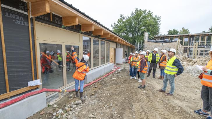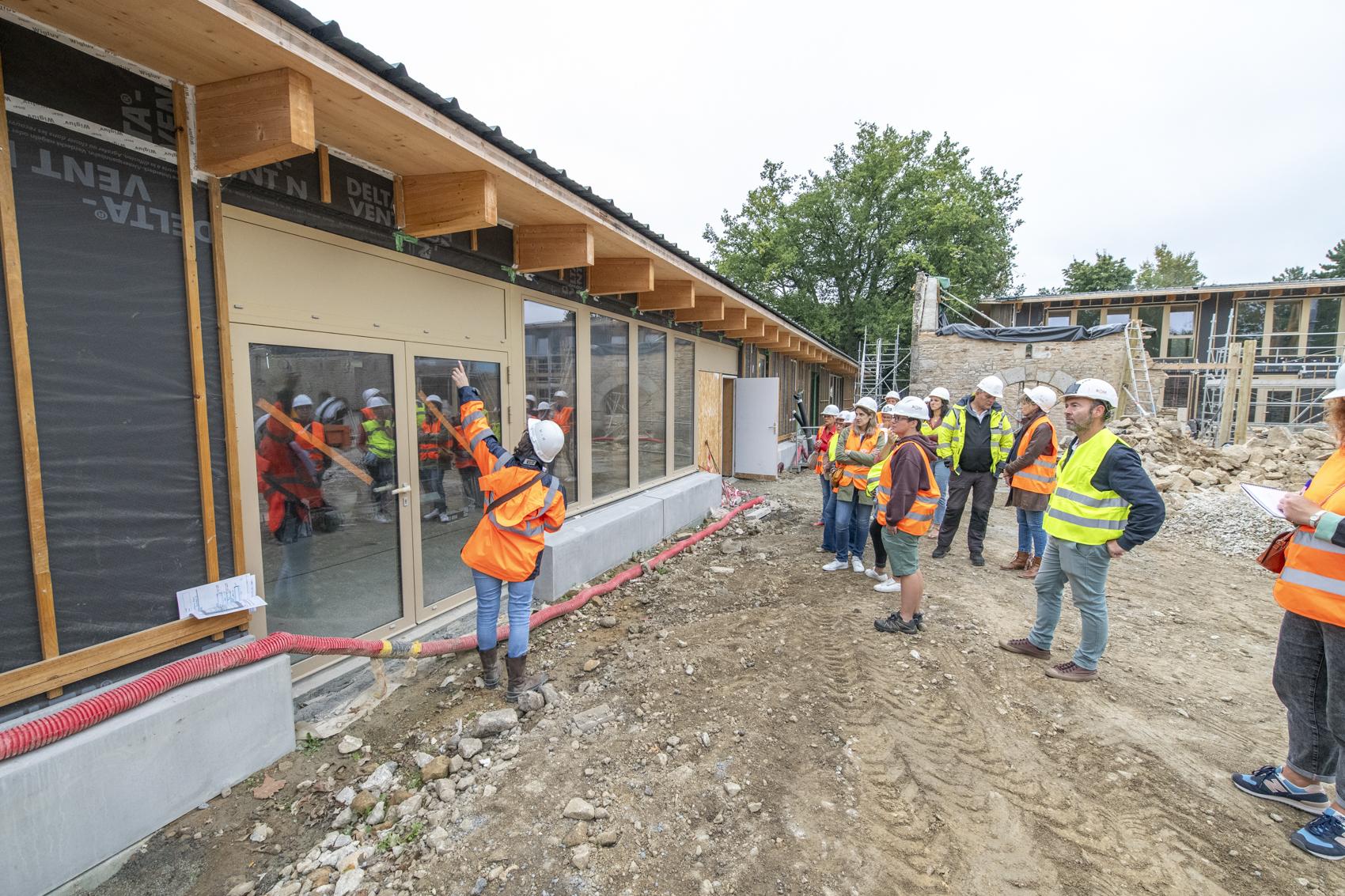 - Le bâtiment se compose d’une structure fortement isolée, par l’usage d’une structure bois avec remplissage d’isolants biosourcés.