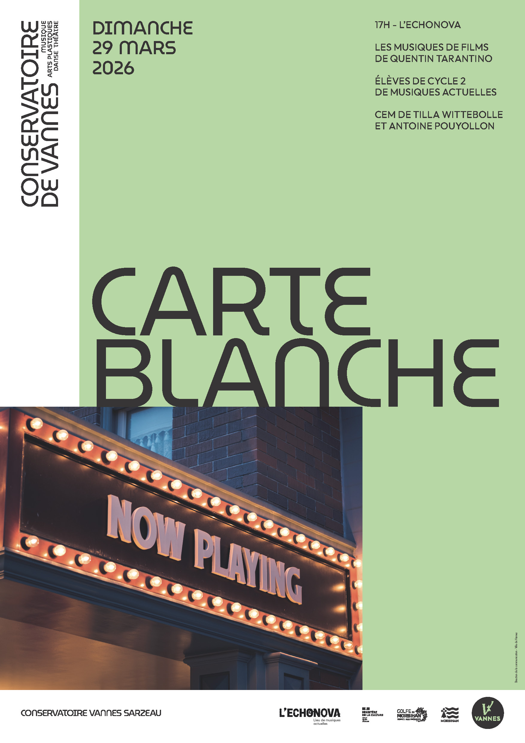 Concert spécial musiques de films de Quentin Tarantino proposé par le Conservatoire de Vannes.