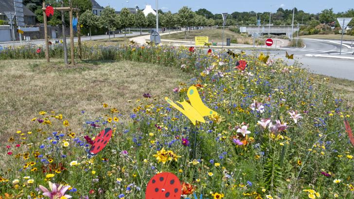Ainsi des plantations de bulbes et rhizomes printaniers et estivaux sont mises en place sur le territoire vannetais. Plus résistants aux conditions climatiques, capables de refleurir de nombreuses années, tolérants à la sécheresse, les bulbes et rhizomes à fleurs sont des végétaux dotés d’un organe de réserve souterrain dans lequel ils vont puiser pour se nourrir dans les moments défavorables tels que l’hiver ou la sécheresse. Ici ce sont 5 000 bulbes et rhizomes qui ont été plantés sur les giratoires Florence-Arthaud et Jean-Maurel, tels que Dahlia, Lys, Liatris, Crocosmia, Glaïeul, Nerine, pour assurer une floraison de juin aux premières gelées. Cette plantation est complétée par un semis de graines de prairie fleurie, tels que Coreopsis, Zinnia, Cosmos, ou encore Bleuet.