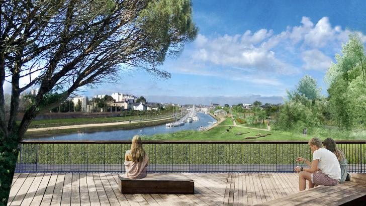 L'agence TER retenue en avril 2024 pour la réalisation des études de conception accompagne la ville de Vannes dans une nouvelle approche résiliente du parc de la Rive gauche. Agence de paysage et d'urbanisme, Grand prix d'urbanisme en 2018, l'Agence TER est largement engagée dans une approche climatique des projets prônant la constitution de sols vivants. Elle a notamment réalisé la place de la Petite Hollande à Nantes par la transformation d'un espace de stationnement en un parc de 4 hectares d'espace de pleine terre, vecteur de biodiversité. Sélectionnée parmi plusieurs groupements, l'agence TER a séduit la Ville de Vannes par son approche des enjeux climatiques.