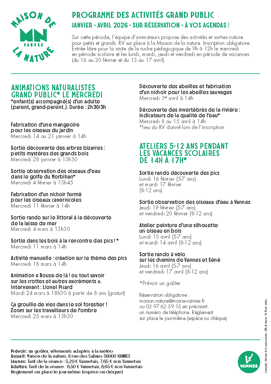 Toute l'année, l'équipe d'animateurs de la Maison de la Nature a le plaisir de vous proposer différentes activités naturalistes pour le grand public et les scolaires.